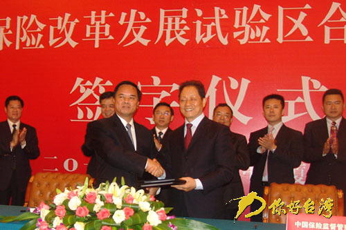 你好臺(tái)灣網(wǎng)廈門10月10日消息(記者周步恒 陳庚)10月9日傍晚,中國保監(jiān)會(huì)與廈門市政府在廈門正式簽署了《關(guān)于建設(shè)廈門保險(xiǎn)改革發(fā)展試驗(yàn)區(qū)合作備忘錄》,中國保監(jiān)會(huì)主席吳定富與廈門市市長(zhǎng)劉賜貴分別代表合作雙方簽署合作備忘錄。廈門市市長(zhǎng)劉賜貴和中國保監(jiān)會(huì)主席助理陳文輝在簽字儀式上致辭。