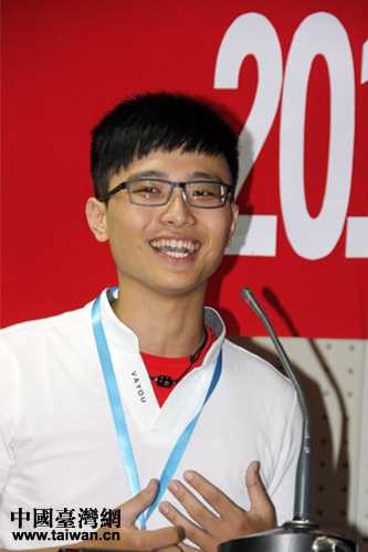 臺灣弘光科技大學的廖仲崴發言,感覺很親切,希望此行成為一生中美好的回憶。(中國臺灣網 郜利敏 攝)
