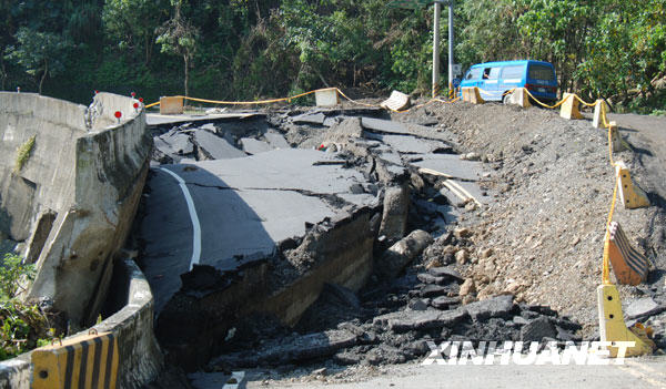 “莫拉克”臺(tái)風(fēng)造成的山洪使南臺(tái)灣六龜鄉(xiāng)路橋損毀嚴(yán)重,外聯(lián)道路中斷,鄉(xiāng)內(nèi)各村之間道路也“支離破碎”,部分地區(qū)還受到堰塞湖的威脅。新華社發(fā)(吳景騰 攝)
