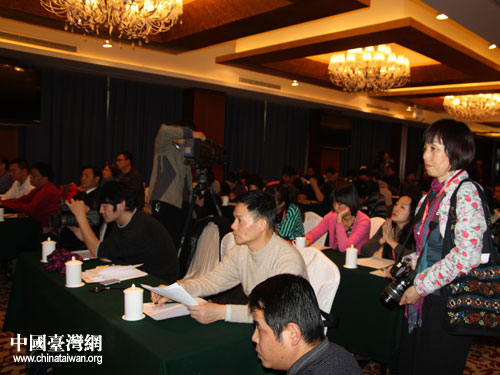 來自兩岸的40多家新聞媒體60多名記者參加了見面會。(記者 肖燕)