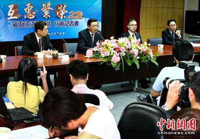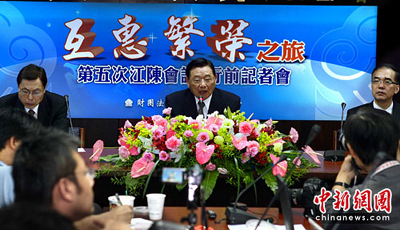 6月27日,臺灣海基會就兩會領導人第5次會談在臺北舉行行程記者會,海基會董事長江丙坤在會上介紹情況并回答記者提問。江丙坤將于28日率18人的海基會協商代表團前往重慶,展開為期3天2夜的“互惠繁榮之旅”。29日,他將與海協會會長陳云林舉行正式會談,就兩岸經濟合作框架協議(ECFA)、兩岸知識產權保護合作協議,以及兩會會務、未來協商安排等事宜進行協商,并舉行兩協議簽署儀式。