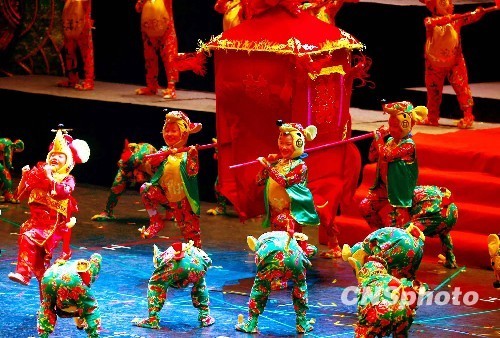 大型兒童童話歌舞劇《十二吉祥》,是該藝術(shù)團(tuán)經(jīng)過(guò)5年潛心創(chuàng)作、3次公演創(chuàng)新、一年悉心創(chuàng)排的精品劇目。該劇以中華民族特有的12生肖為形象,通過(guò)12個(gè)風(fēng)格各具的節(jié)目,講述眾生肖固有的性格、品行,在情景中展示故事并揭示主題,形象演繹了兒童精神世界的真、善、美,充滿濃郁的中華民族傳統(tǒng)風(fēng)情和文化底蘊(yùn)。