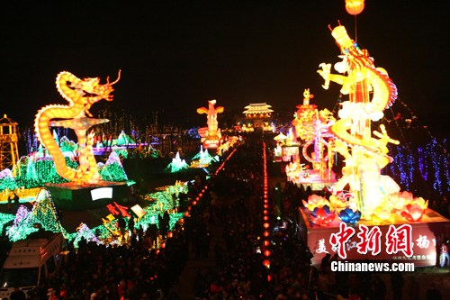 29日,“神龍躍兩岸,盛世共和諧”2011江蘇(揚州)燈會在揚州瘦西湖畔宋夾城正式亮燈迎客,再現(xiàn)“火樹銀花不夜天”勝景。崔佳明 攝