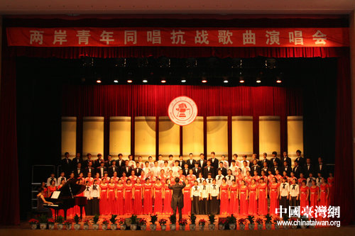 中國(guó)臺(tái)灣網(wǎng)8月29日北京消息 8月28日晚,兩岸青年同唱抗戰(zhàn)歌曲演唱會(huì)在北京交通大學(xué)天佑會(huì)堂拉開(kāi)帷幕。此次兩岸青年同唱抗戰(zhàn)歌曲演唱會(huì)是兩岸歷史上首場(chǎng)以紀(jì)念抗戰(zhàn)為主題的大學(xué)生合唱團(tuán)聯(lián)合演出。此次演唱會(huì),進(jìn)一步增強(qiáng)了兩岸青年文化交流,推動(dòng)兩岸關(guān)系和平發(fā)展。(記者 郭瑩瑩)