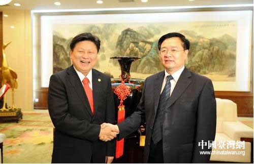 王國生省長會見臺灣花蓮縣長傅崐萁。(湖北省臺辦 陸勝 攝)
