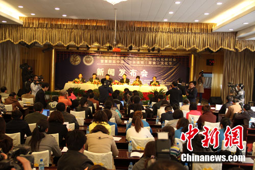 第九屆海峽兩岸傳統文化于現代化研討會暨第四屆中國·介休清明(寒食)文化節新聞發布會3月31日下午在山西介休綿山風景區舉行。程濤 攝