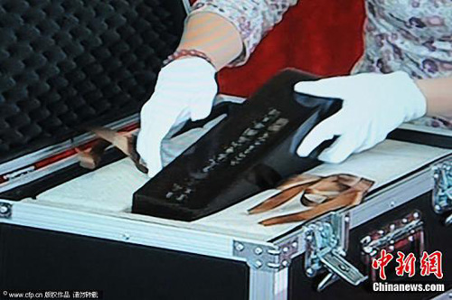 5月11日,浙江省博物館的“鎮館之寶”《富春山居圖》前半段《剩山圖》赴臺啟運儀式在杭州舉行。朱引煒 攝 圖片來源:CFP視覺中國
