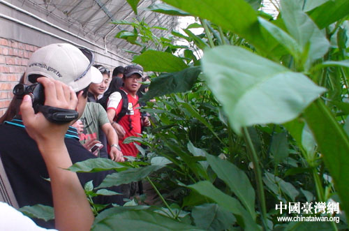 中國臺灣網8月1日北京消息 7月28日下午,由國臺辦新聞局、北京市臺辦宣傳處組織的臺灣15家媒體駐京記者到通州臺湖鎮采訪新農村建設情況,參觀現代設施農業企業——金福藝農農業科技發展有限公司。