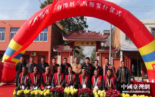 《河南有個“臺灣村”》一書發行儀式在“臺灣村”牌坊前隆重舉行。圖片來源:鄧州臺辦