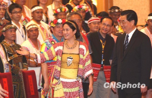 以高金素梅為團長的臺灣少數民族代表團十九日抵達北京開始訪問。代表團下飛機后的第一場活動就是與中共中央總書記胡錦濤在人民大會堂的會見。會見中,胡錦濤對臺灣少數民族代表團來大陸參訪表示熱烈歡迎,并向臺灣少數民族同胞致以誠摯問候,同時向遭受臺風襲擊的臺灣父老鄉親致以深切慰問,對不幸遇難的臺灣同胞深表哀悼。