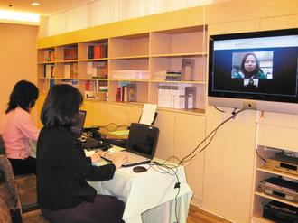 士林地檢署偵辦和信醫院醫師黃麟杰在大陸涉嫌殺害情婦案,以遠程視頻制做大陸5名證人筆錄。地檢署昨天模擬當時視頻偵訊情形。圖片來源:臺灣《聯合報》