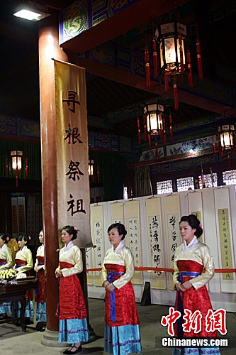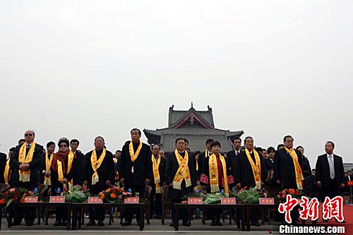 4月5日上午,中國·洪洞二十一屆大槐樹尋根祭祖大典在山西洪洞大槐樹尋根祭祖園舉行,來自海內外的萬余名華人匯聚于此,虔誠祭祖。中新社發 張云 攝