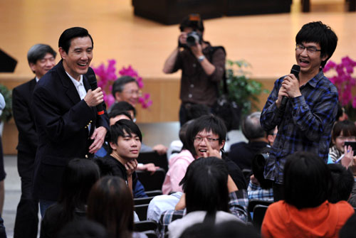 馬英九還問學生對陸生來臺政策的看法,有學生說“歡迎”,因為陸生跟臺生相處融洽,獲得馬英九稱贊。