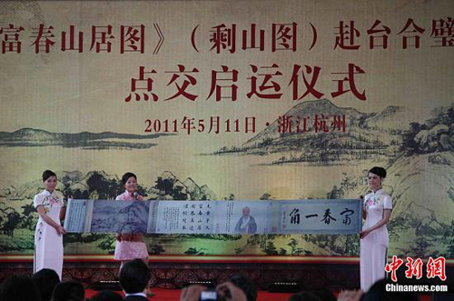 中新網(wǎng)5月31日電 據(jù)臺灣“中央社”報道,分藏在臺北故宮博物院和浙江博物館的兩段“富春山居圖”,闊別361年后,明天(6月1日)將在臺北合璧亮相。