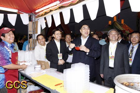 美食節(jié)的120多個中外攤位,分布在中式美食街、亞洲美食街、歐陸美食街、風味美食街及甜品街上,有萬豪軒等當?shù)刂茦牵灿衼碜约∑隆⑸嘲偷鹊氐纳烫枴D锶遣恕ⅠR來菜、印度菜及中國菜四大菜系一起亮相。食客一邊品嘗美味,還可欣賞表演。馬來西亞特別組織表演隊在開幕式上演出民族舞蹈。河南省也帶來了雜技、武術(shù)、民俗技藝等表演,并展示廚藝絕活。