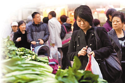 寒冷天氣下菜價急升,灣仔鵝頸橋街市源興蔬菜負責人吳先生表示,圣誕遇寒流,蔬菜供應減少,但不少市民買菜作火鍋材料,結果搶高菜價,以菜芯為例,平日售價每斤約6元,近日升至每斤9至10元,茼蒿現時售每斤7.5元,也較平日貴約25%;節瓜更升至每斤10元,較早前售價上升近1倍。吳先生表示,寒冷天氣影響來貨供應,倘氣溫不再進一步下降,料至元旦日菜價將維持現時水平,但要視乎韶關及其它廣東省地區菜場蔬菜的供港情況,如其時寒冷天氣影響收成,供不應求下不排除新年菜價更貴,市民新年勢“捱貴菜”。