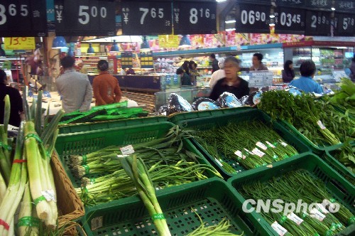 2010年5月9日,江蘇蘇州,市民正在選購(gòu)新鮮蔬菜。據(jù)蘇州市物價(jià)局監(jiān)測(cè)數(shù)據(jù)表明,5月7日蘇州蔬菜綜合平均批發(fā)價(jià)指數(shù)每市斤1.42元,比5日1.56元的價(jià)格指數(shù)下跌4%,蔬菜價(jià)格繼續(xù)呈下降態(tài)勢(shì)。 當(dāng)季蔬菜價(jià)格跌幅8%--30%之間。 中新社發(fā) 李俊鋒 攝