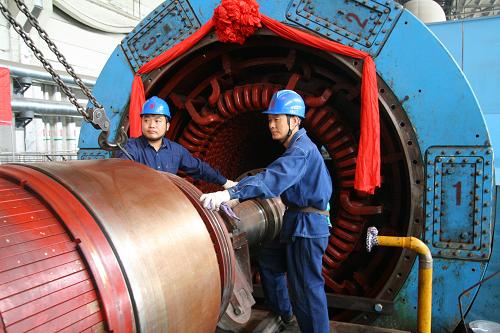 5月21日,工人們在大唐馬頭電廠拆除6號發電機組主要部件。 當日,大唐河北馬頭電廠將運行了30年的6號機組拆除,年可節約標準煤46萬余噸,年削減二氧化硫排放8000余噸,年削減煙塵排放9000余噸。至此,該廠煤耗高、效率低、污染重的4臺小火電機組全部關停。 新華社發(王九忠 攝)