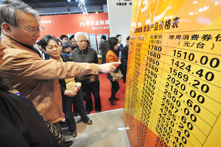 市民在查看用消費券購買家電可享受的優惠。新華社發(李忠 攝)