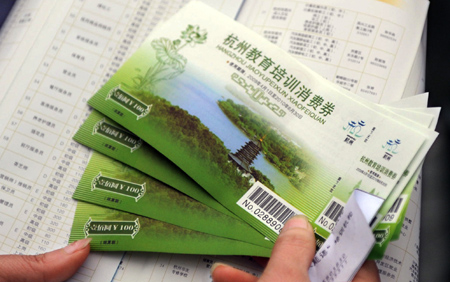 杭州發放城鎮常住居民教育培訓消費券。新華社發(周金友攝)