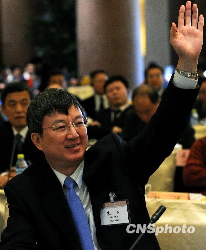 3月20日,中國發(fā)展高層論壇2010在北京舉行,國內(nèi)外經(jīng)濟專家濟濟一堂。圖為中國人民銀行副行長朱民舉手提問臺上的專家。 中新社發(fā) 劉震 攝