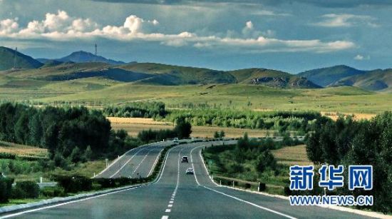 資料圖片:圖為寬闊的橫跨內蒙古的省際大通道烏蘭浩特市到突泉縣的路段(2010年8月25日)。 新華社記者李欣攝