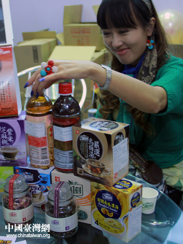 朱俊宏是臺灣休閑茶飲品牌“三點一刻”的創辦人,主要經營奶茶、花果茶、濃湯,以及各色干果。從2011年,“三點一刻”開始參加名品展出,其在大陸北方市場的營業額也隨之成倍增長。據他說,他們只要參加名品會,結束的時候都是“光著走的”——因為太受歡迎,產品早賣完了。今年,他們又相繼參加了上海、南寧、成都、大連、南京、青島等地的臺灣名品博覽會,受到大陸各地消費者追捧。