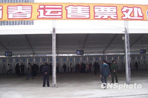 1月20日下午,上海火車站北廣場上一座擁有200個售票窗口的臨時“大賣場”正式面向旅客出售2010年春運火車票。 中新社發 周東潮 攝