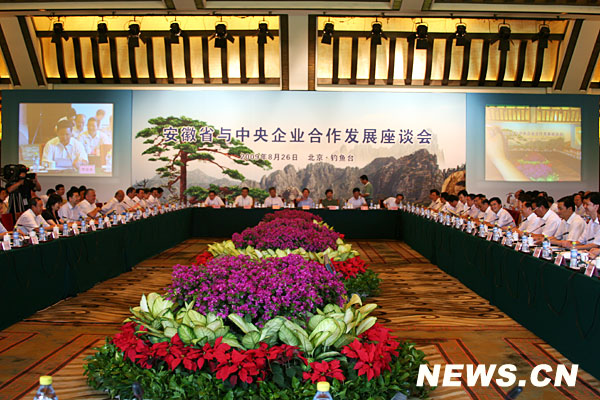8月26日,安徽省省長王三運率領安徽17個市負責人及省屬企業主要負責人的政府代表團進京,與中央企業舉行合作發展座談會,表達了安徽省與中央企業合作聯姻的誠意和強烈愿望。