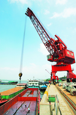 上半年全市外需實現恢復性增長。這是長沙新港大型裝卸設備正在調運鋼材。