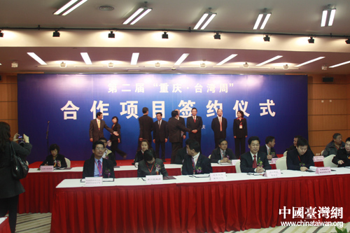 18日上午,第二屆“重慶臺(tái)灣周”合作項(xiàng)目簽約儀式在重慶國(guó)際會(huì)展中心舉行。(中國(guó)臺(tái)灣網(wǎng) 程軼文攝)