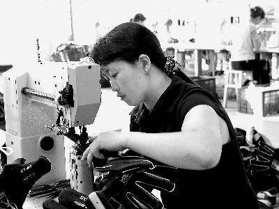 宏國(龍巖)運(yùn)動用品有限公司員工正在趕制出口歐美的棒球手套。
