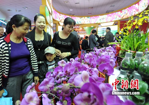 11月18日,第二屆海峽兩岸現代農業博覽會·第十二屆海峽兩岸花卉博覽會在福建漳州東南花都開幕。本屆博覽會以“花開兩岸,合作共贏”為主題,吸引了來自海峽兩岸及海內外的1206家企業參展,其中臺灣企業有326家。圖為第二屆農博會臺灣農民創業園展區內優質蝴蝶蘭綻放,吸引觀眾眼球。