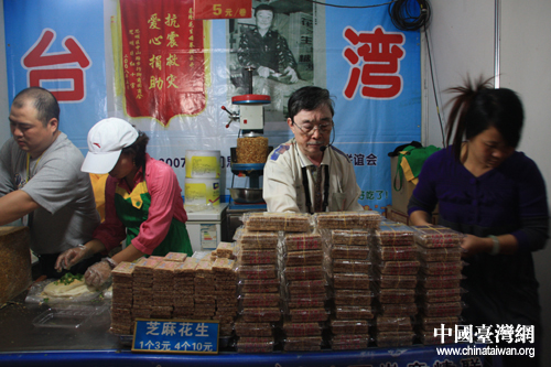 中國(guó)臺(tái)灣網(wǎng)11月19日漳州報(bào)道 自第二屆海峽兩岸現(xiàn)代農(nóng)業(yè)博覽會(huì)暨第十二屆海峽兩岸花卉博覽會(huì)開(kāi)幕以來(lái),臺(tái)灣農(nóng)產(chǎn)品展銷(xiāo)區(qū)一直擁有超高人氣,來(lái)自臺(tái)灣的特色美食、手工藝品等吸引了眾多參觀者邊看邊買(mǎi),十分熱鬧。
