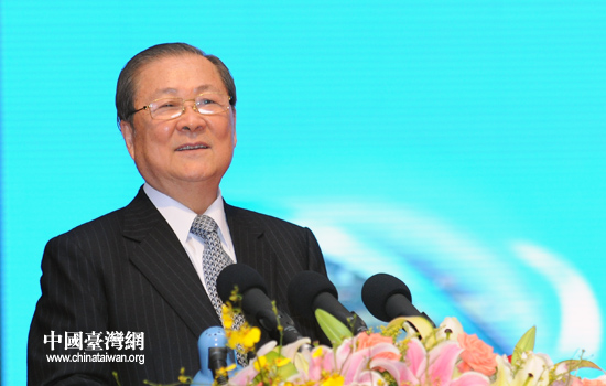 第四屆海峽兩岸客家高峰論壇21日在福建龍巖開幕,圖為中華海峽兩岸客家文經交流協會理事長饒穎奇在開幕式上致辭。(中國臺灣網 張弛 攝)