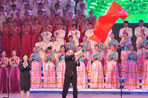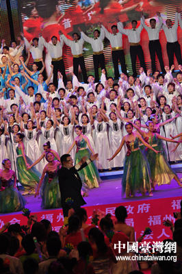 中國臺灣網(wǎng)6月22日福州消息 21日晚,由中國音樂家協(xié)會、福州市政府和福建省對外文化交流協(xié)會聯(lián)合主辦的“海峽論壇·第三屆海峽兩岸合唱節(jié)”在福州市體育館舉辦了閉幕式暨頒獎音樂會。中共中央臺辦、國務(wù)院臺辦副主任葉克冬,中國音協(xié)分黨組書記、常務(wù)副主席徐沛東,福建省有關(guān)領(lǐng)導(dǎo)袁榮祥、唐國忠、蘇增添、李祖可等嘉賓,在閉幕式上向來自海峽兩岸參加本屆合唱節(jié)的獲獎單位頒發(fā)了獎杯和證書。
