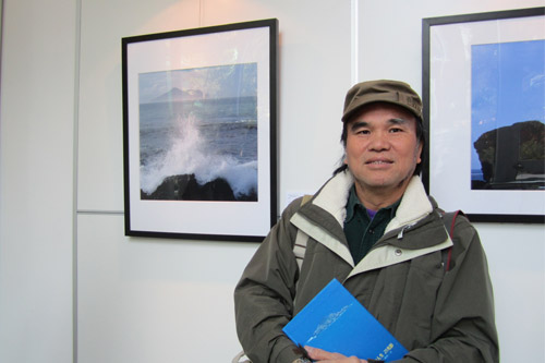 鐘永和與他的《海洋風景》系列。(你好臺灣網 林珣攝)