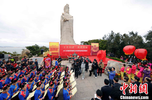 2月11日,農歷正月初九。由兩岸聯辦的“2011年海峽兩岸慶賞元宵佳節媽祖燈會”在福建莆田湄洲媽祖祖廟、臺灣云林北港朝天宮同時啟動。中新社記者 劉可耕 攝