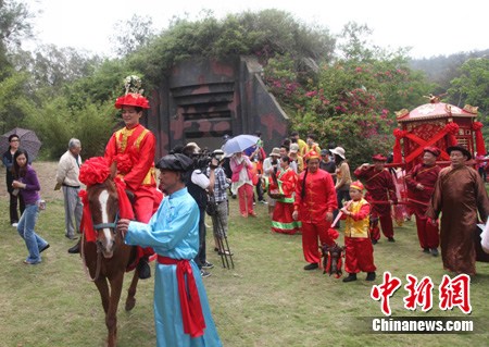近日,福建泉州組織七個專業劇團和民間藝術團輪番赴金門展演泉州傳統戲劇藝術。本次赴金門演出組織者之一的吳培植先生16日透露,一場仿古閩南婚禮表演在金門碉堡禁區成功舉辦,“這是大陸首次在金門軍事地展示大陸民俗活動”。