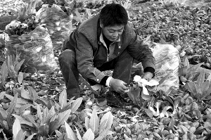 4月22日,大興區(qū)一蔬菜大棚內(nèi),菜農(nóng)正在采摘油菜。本報(bào)實(shí)習(xí)生 田恬 攝
