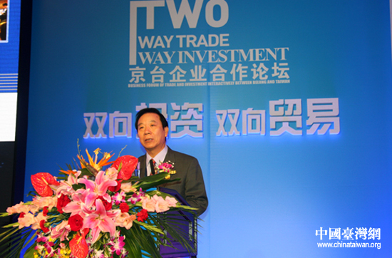 北京市委常委、常務(wù)副市長吉林在致辭中表示,京臺兩地經(jīng)貿(mào)合作素有良好傳統(tǒng), ECFA協(xié)議的順利商簽,更為兩地經(jīng)貿(mào)合作開啟新篇章。當前,北京正在實施“十二五”規(guī)劃,并將在“十二五”期間,著力提升創(chuàng)新能力。臺灣在高新技術(shù)、綠色能源、文化創(chuàng)意、旅游觀光、金融服務(wù)等行業(yè)具有相當優(yōu)勢。北京將積極拓展與臺灣在各個方面的交流,注重通過企業(yè)合作,學(xué)習(xí)臺灣企業(yè)的優(yōu)良發(fā)展經(jīng)驗。這對進一步促進兩地經(jīng)貿(mào)交流、實現(xiàn)兩地優(yōu)勢互補和戰(zhàn)略雙贏、促進兩地持續(xù)發(fā)展具有重要意義。