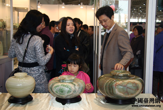 臺灣精美展品引發好奇與關注。(中國臺灣網 王思羽 攝)