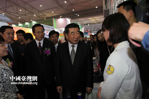 在開幕式前,農(nóng)業(yè)部部長韓長賦陪同國務(wù)院副總理回良玉、政協(xié)副主席張梅穎等領(lǐng)導(dǎo)參觀視察了本屆農(nóng)交會的各項工作情況。在網(wǎng)絡(luò)報道臺前,農(nóng)業(yè)部信息中心副主任吳秀媛就本屆交易會網(wǎng)上信息宣傳、內(nèi)容發(fā)布等工作情況向回良玉副總理進(jìn)行了簡要地介紹。