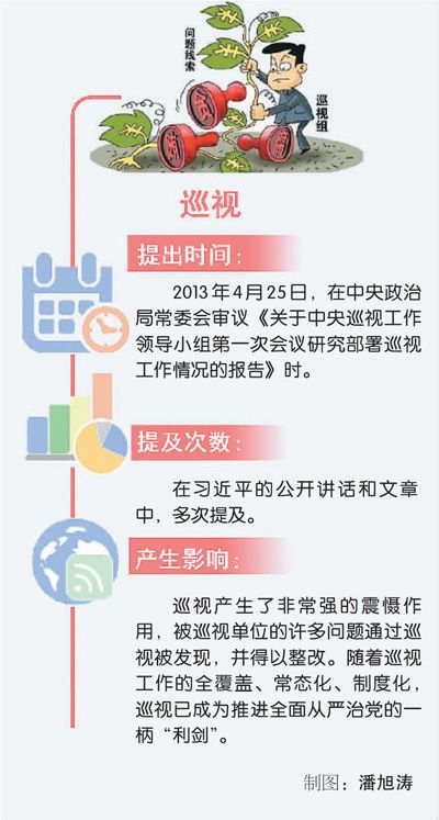 2013年,中央政治局常委會議審議通過《中央巡視工作規劃(2013—2017年)》,聽取每一輪巡視情況匯報。而在2015年,中共中央印發了《中國共產黨巡視工作條例》,成為規范巡視工作、強化黨內監督的重要基礎性法規。中共十八大之后施行的專項巡視等做法,寫進了《條例》中。