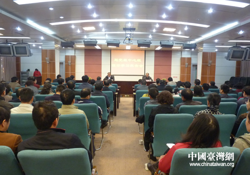 中國臺灣網(wǎng)11月7日合肥消息 11月5日下午,省臺辦主任朱德祥應(yīng)邀赴省廣電局,給局黨組中心組理論學(xué)習成員作“臺海形勢報告”。省委宣傳部副部長、省廣電局黨組書記、局長車敦安主持報告會,局黨組成員、局機關(guān)全體人員、局屬各單位領(lǐng)導(dǎo)班子成員,省廣院處以上干部及副高以上人員,其他單位副高以上人員及科級干部,近100人聆聽了報告。