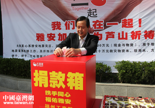 市紅十字會有關負責人表示,震災無情,人間有愛,善款是傳遞愛心的載體,大潤發作為臺資企業體現了關愛災區、回報社會的責任感和人道主義精神。市紅十字會希望大家積極為四川雅安地震災區捐款,救助災區災民。(中國臺灣網阜陽市臺辦通訊員 陳軼)
