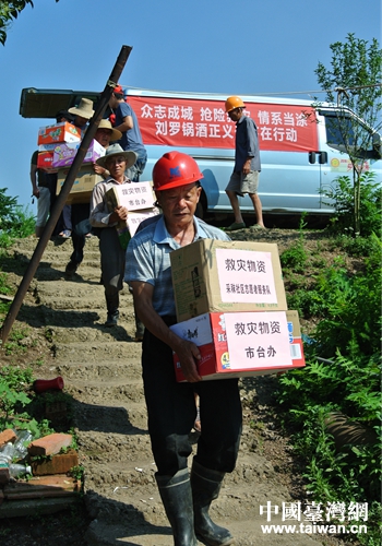 7月8日,市臺辦聯合采秣社區共募集了3000元購置了礦泉水、餅干、面包等救災物資,第一時間送到了我辦共建村鐘山村負責的抗洪第一線——當涂縣雙梅圩。
