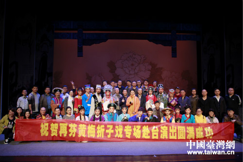 中國臺灣網3月6日臺北訊 日前,應臺灣辜公亮文教基金會邀請,安慶再芬黃梅藝術劇院一行74名演職人員,在臺北市城市舞臺演出黃梅戲四場,先后為觀眾奉獻了經典黃梅戲《徽州女人》2場、《女駙馬》以及折子戲專場。尤其是《徽州女人》由國家一級演員韓再芬親自領銜主演。這次是大陸首次將黃梅戲專場送入寶島,讓臺灣同胞盡情享受黃梅戲獨具特色的文化魅力。