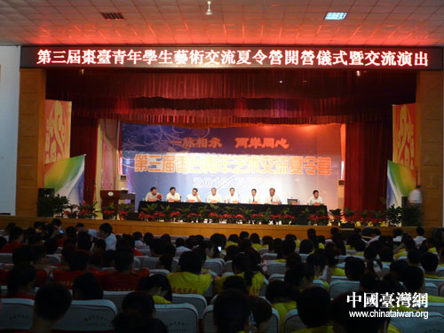 中國臺(tái)灣網(wǎng)8月4日棗莊消息 日前,“一脈相承·兩岸同心——第三屆棗臺(tái)青年藝術(shù)交流夏令營”開營儀式在山東省棗莊師范學(xué)校舉行,中共棗莊市委常委、統(tǒng)戰(zhàn)部長陳偉,棗莊市臺(tái)辦、棗莊市教育局負(fù)責(zé)同志出席夏令營開營儀式。