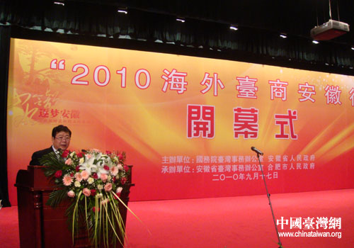 國臺辦副主任孫亞夫在2010海外臺商安徽行”開幕式上致辭(圖片來源:合肥市臺辦)